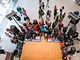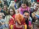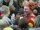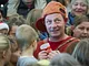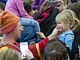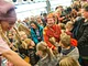 Vagtskiftet ved Marselisborg Slot skærtorsdag kl. 12 tiltrak mange fremmødte, mens politiets indsatsleder undervejs tog sig tid til at besvare spørgsmål fra en nysgerrig dreng.