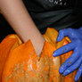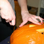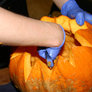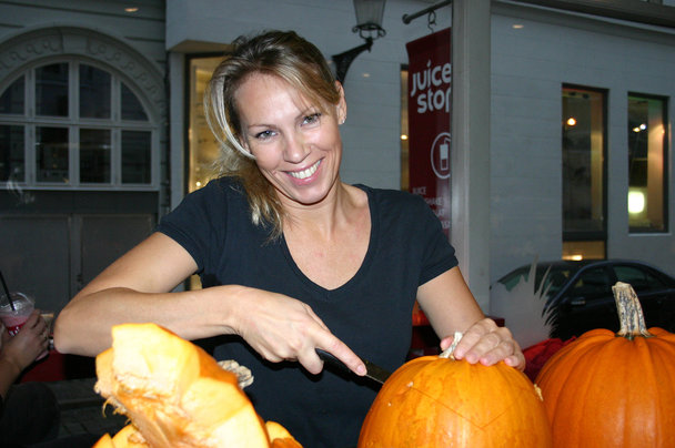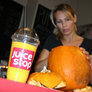 27.10.11 Hos Juice Stop og den miljøvenlige frisør Birthe Gleerup i Badestuegade, er forberedelserne med udskæring af græskaren i fuld gang. Halloween holdes for at understrege sammenholdet og ånden i Latinerkvarteret, hvor alle butikkerne er med på idéen, der spreder hygge, når mørket begynder at falde på.