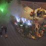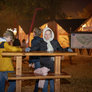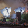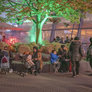 Tåge og uhygge, det er halloween i Tivoli. Glade gys og skrig lyder fra spændte børn, der møder zombier og andre uhyggelige væsener, der i mørket ser meget skræmmende ud. Lyset fra de smukke forlystelser er en flot kontrast til uhyggen.