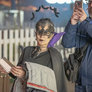 Vagtskiftet ved Marselisborg Slot skærtorsdag kl. 12 tiltrak mange fremmødte, mens politiets indsatsleder undervejs tog sig tid til at besvare spørgsmål fra en nysgerrig dreng.