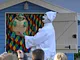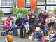 Vagtskiftet ved Marselisborg Slot skærtorsdag kl. 12 tiltrak mange fremmødte, mens politiets indsatsleder undervejs tog sig tid til at besvare spørgsmål fra en nysgerrig dreng.