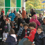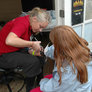 Vagtskiftet ved Marselisborg Slot skærtorsdag kl. 12 tiltrak mange fremmødte, mens politiets indsatsleder undervejs tog sig tid til at besvare spørgsmål fra en nysgerrig dreng.