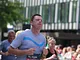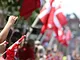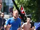 Vagtskiftet ved Marselisborg Slot skærtorsdag kl. 12 tiltrak mange fremmødte, mens politiets indsatsleder undervejs tog sig tid til at besvare spørgsmål fra en nysgerrig dreng.