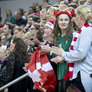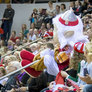Vagtskiftet ved Marselisborg Slot skærtorsdag kl. 12 tiltrak mange fremmødte, mens politiets indsatsleder undervejs tog sig tid til at besvare spørgsmål fra en nysgerrig dreng.
