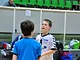 Vagtskiftet ved Marselisborg Slot skærtorsdag kl. 12 tiltrak mange fremmødte, mens politiets indsatsleder undervejs tog sig tid til at besvare spørgsmål fra en nysgerrig dreng.