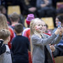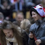 Vagtskiftet ved Marselisborg Slot skærtorsdag kl. 12 tiltrak mange fremmødte, mens politiets indsatsleder undervejs tog sig tid til at besvare spørgsmål fra en nysgerrig dreng.