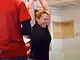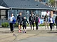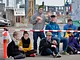 Vagtskiftet ved Marselisborg Slot skærtorsdag kl. 12 tiltrak mange fremmødte, mens politiets indsatsleder undervejs tog sig tid til at besvare spørgsmål fra en nysgerrig dreng.