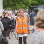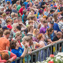 Vagtskiftet ved Marselisborg Slot skærtorsdag kl. 12 tiltrak mange fremmødte, mens politiets indsatsleder undervejs tog sig tid til at besvare spørgsmål fra en nysgerrig dreng.