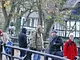 Vagtskiftet ved Marselisborg Slot skærtorsdag kl. 12 tiltrak mange fremmødte, mens politiets indsatsleder undervejs tog sig tid til at besvare spørgsmål fra en nysgerrig dreng.
