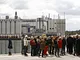 Vagtskiftet ved Marselisborg Slot skærtorsdag kl. 12 tiltrak mange fremmødte, mens politiets indsatsleder undervejs tog sig tid til at besvare spørgsmål fra en nysgerrig dreng.