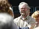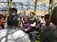 Vagtskiftet ved Marselisborg Slot skærtorsdag kl. 12 tiltrak mange fremmødte, mens politiets indsatsleder undervejs tog sig tid til at besvare spørgsmål fra en nysgerrig dreng.