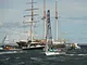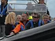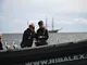 Vagtskiftet ved Marselisborg Slot skærtorsdag kl. 12 tiltrak mange fremmødte, mens politiets indsatsleder undervejs tog sig tid til at besvare spørgsmål fra en nysgerrig dreng.