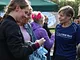 Vagtskiftet ved Marselisborg Slot skærtorsdag kl. 12 tiltrak mange fremmødte, mens politiets indsatsleder undervejs tog sig tid til at besvare spørgsmål fra en nysgerrig dreng.