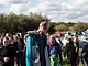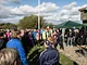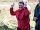 Vagtskiftet ved Marselisborg Slot skærtorsdag kl. 12 tiltrak mange fremmødte, mens politiets indsatsleder undervejs tog sig tid til at besvare spørgsmål fra en nysgerrig dreng.