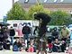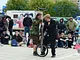 Vagtskiftet ved Marselisborg Slot skærtorsdag kl. 12 tiltrak mange fremmødte, mens politiets indsatsleder undervejs tog sig tid til at besvare spørgsmål fra en nysgerrig dreng.
