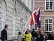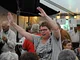 Vagtskiftet ved Marselisborg Slot skærtorsdag kl. 12 tiltrak mange fremmødte, mens politiets indsatsleder undervejs tog sig tid til at besvare spørgsmål fra en nysgerrig dreng.