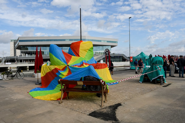Afsløring og fejring af skulpturgruppen Historiske Spor på Mindet ved Aarhus Havn.