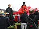 Vagtskiftet ved Marselisborg Slot skærtorsdag kl. 12 tiltrak mange fremmødte, mens politiets indsatsleder undervejs tog sig tid til at besvare spørgsmål fra en nysgerrig dreng.