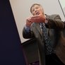 Vagtskiftet ved Marselisborg Slot skærtorsdag kl. 12 tiltrak mange fremmødte, mens politiets indsatsleder undervejs tog sig tid til at besvare spørgsmål fra en nysgerrig dreng.