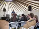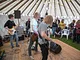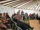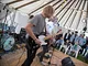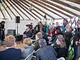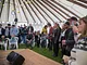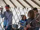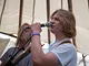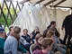 Vagtskiftet ved Marselisborg Slot skærtorsdag kl. 12 tiltrak mange fremmødte, mens politiets indsatsleder undervejs tog sig tid til at besvare spørgsmål fra en nysgerrig dreng.