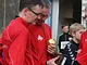 Vagtskiftet ved Marselisborg Slot skærtorsdag kl. 12 tiltrak mange fremmødte, mens politiets indsatsleder undervejs tog sig tid til at besvare spørgsmål fra en nysgerrig dreng.