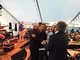 Vagtskiftet ved Marselisborg Slot skærtorsdag kl. 12 tiltrak mange fremmødte, mens politiets indsatsleder undervejs tog sig tid til at besvare spørgsmål fra en nysgerrig dreng.