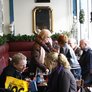 Vagtskiftet ved Marselisborg Slot skærtorsdag kl. 12 tiltrak mange fremmødte, mens politiets indsatsleder undervejs tog sig tid til at besvare spørgsmål fra en nysgerrig dreng.