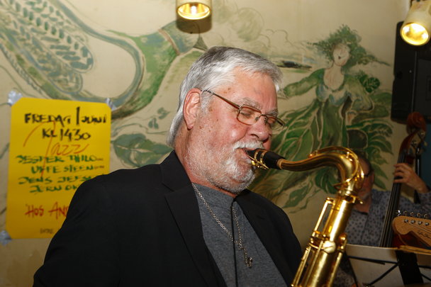 Her spillede tenorsaxofonisten Jesper Thilo sammen med guitaristen Uffe Steen, bassisten Jens Jefsen og Okbo selv på trommer.