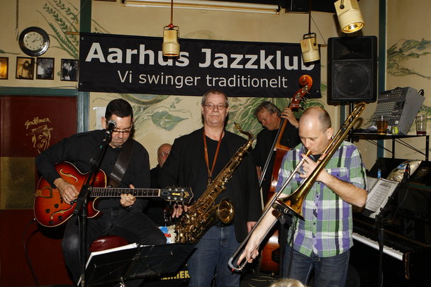 Kims Bacon 40-års jubilæumskoncert Hos Anders| Efter fyrre år er der stadig bud efter dette orkester, som er blevet en del af den århusianske jazzhistorie siden starten på Vestergade 58 i 1972. I en tid med skilsmisser og virksomhedsfallitter er det godt, at der stadig er nogen, der står sammen om at levere forrygende jazz, blues og boogie woogie. En dejlig eftermiddag med svingende musik og glade mennesker.