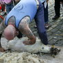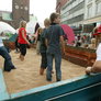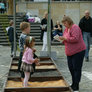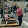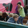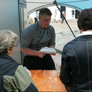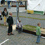 Vagtskiftet ved Marselisborg Slot skærtorsdag kl. 12 tiltrak mange fremmødte, mens politiets indsatsleder undervejs tog sig tid til at besvare spørgsmål fra en nysgerrig dreng.