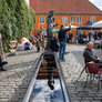 Vagtskiftet ved Marselisborg Slot skærtorsdag kl. 12 tiltrak mange fremmødte, mens politiets indsatsleder undervejs tog sig tid til at besvare spørgsmål fra en nysgerrig dreng.