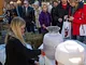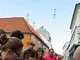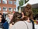 Vagtskiftet ved Marselisborg Slot skærtorsdag kl. 12 tiltrak mange fremmødte, mens politiets indsatsleder undervejs tog sig tid til at besvare spørgsmål fra en nysgerrig dreng.