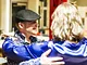 Vagtskiftet ved Marselisborg Slot skærtorsdag kl. 12 tiltrak mange fremmødte, mens politiets indsatsleder undervejs tog sig tid til at besvare spørgsmål fra en nysgerrig dreng.