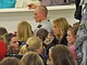 Vagtskiftet ved Marselisborg Slot skærtorsdag kl. 12 tiltrak mange fremmødte, mens politiets indsatsleder undervejs tog sig tid til at besvare spørgsmål fra en nysgerrig dreng.
