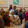Der var rigtig mange mennesker der stod klar til kl 12:30 Da dørene blev åbnet til alle loppe effekterne, som var samlet ind.