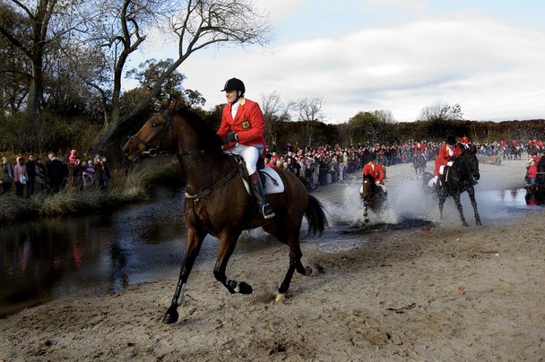 Hubertusjagt i Marselisborg skoven, syd for Århus. Her ved Moesgård strand