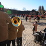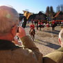 Vagtskiftet ved Marselisborg Slot skærtorsdag kl. 12 tiltrak mange fremmødte, mens politiets indsatsleder undervejs tog sig tid til at besvare spørgsmål fra en nysgerrig dreng.