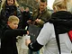 Vagtskiftet ved Marselisborg Slot skærtorsdag kl. 12 tiltrak mange fremmødte, mens politiets indsatsleder undervejs tog sig tid til at besvare spørgsmål fra en nysgerrig dreng.
