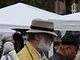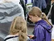 Vagtskiftet ved Marselisborg Slot skærtorsdag kl. 12 tiltrak mange fremmødte, mens politiets indsatsleder undervejs tog sig tid til at besvare spørgsmål fra en nysgerrig dreng.