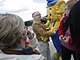 Vagtskiftet ved Marselisborg Slot skærtorsdag kl. 12 tiltrak mange fremmødte, mens politiets indsatsleder undervejs tog sig tid til at besvare spørgsmål fra en nysgerrig dreng.
