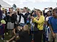 Vagtskiftet ved Marselisborg Slot skærtorsdag kl. 12 tiltrak mange fremmødte, mens politiets indsatsleder undervejs tog sig tid til at besvare spørgsmål fra en nysgerrig dreng.