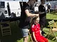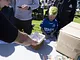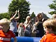 Vagtskiftet ved Marselisborg Slot skærtorsdag kl. 12 tiltrak mange fremmødte, mens politiets indsatsleder undervejs tog sig tid til at besvare spørgsmål fra en nysgerrig dreng.