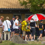 Vagtskiftet ved Marselisborg Slot skærtorsdag kl. 12 tiltrak mange fremmødte, mens politiets indsatsleder undervejs tog sig tid til at besvare spørgsmål fra en nysgerrig dreng.