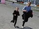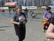 Vagtskiftet ved Marselisborg Slot skærtorsdag kl. 12 tiltrak mange fremmødte, mens politiets indsatsleder undervejs tog sig tid til at besvare spørgsmål fra en nysgerrig dreng.