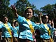 Vagtskiftet ved Marselisborg Slot skærtorsdag kl. 12 tiltrak mange fremmødte, mens politiets indsatsleder undervejs tog sig tid til at besvare spørgsmål fra en nysgerrig dreng.