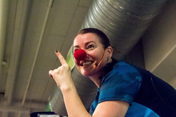 12 instruktører, 12 temaer og 300 deltagere på cyklerne, svedte i den gode sags tjeneste. I 2014 blev der indsamlet 50.000,- kr. til hospitalsklovnene. Den endelige beløb for 2015 blev 58.799 kr., som vil blive overdraget til Danske Hospitalsklovne.