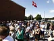 Vagtskiftet ved Marselisborg Slot skærtorsdag kl. 12 tiltrak mange fremmødte, mens politiets indsatsleder undervejs tog sig tid til at besvare spørgsmål fra en nysgerrig dreng.