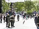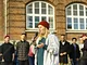 Vagtskiftet ved Marselisborg Slot skærtorsdag kl. 12 tiltrak mange fremmødte, mens politiets indsatsleder undervejs tog sig tid til at besvare spørgsmål fra en nysgerrig dreng.
