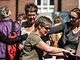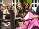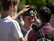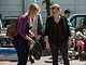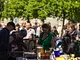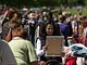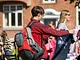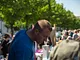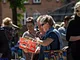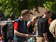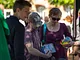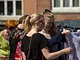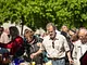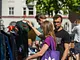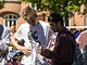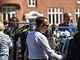 Vagtskiftet ved Marselisborg Slot skærtorsdag kl. 12 tiltrak mange fremmødte, mens politiets indsatsleder undervejs tog sig tid til at besvare spørgsmål fra en nysgerrig dreng.