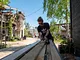 Vagtskiftet ved Marselisborg Slot skærtorsdag kl. 12 tiltrak mange fremmødte, mens politiets indsatsleder undervejs tog sig tid til at besvare spørgsmål fra en nysgerrig dreng.